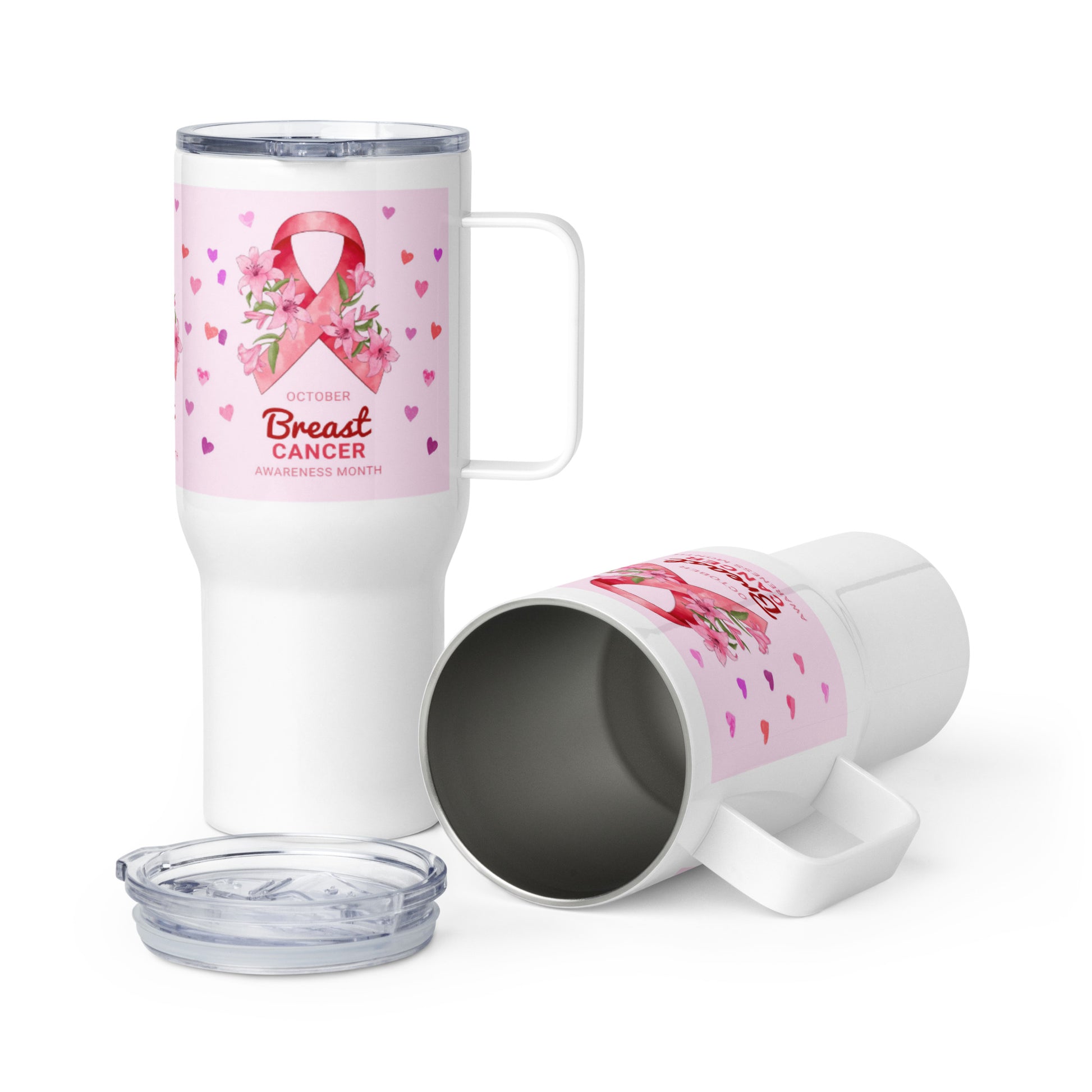 October Breast Cancer Awareness Month Travel mug with a handle