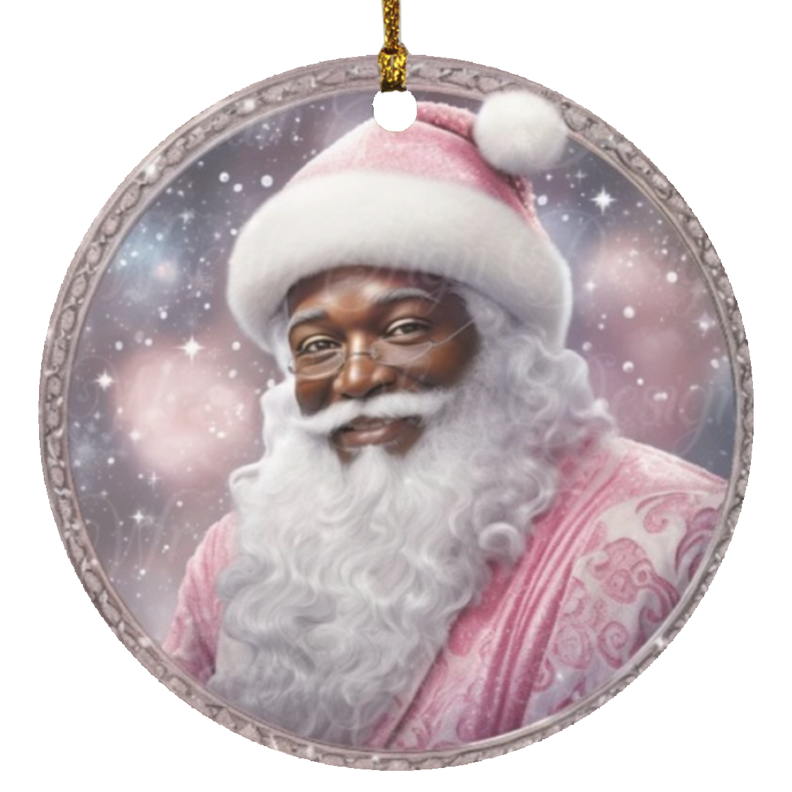 Santa In Pink Circle Ornament (2)